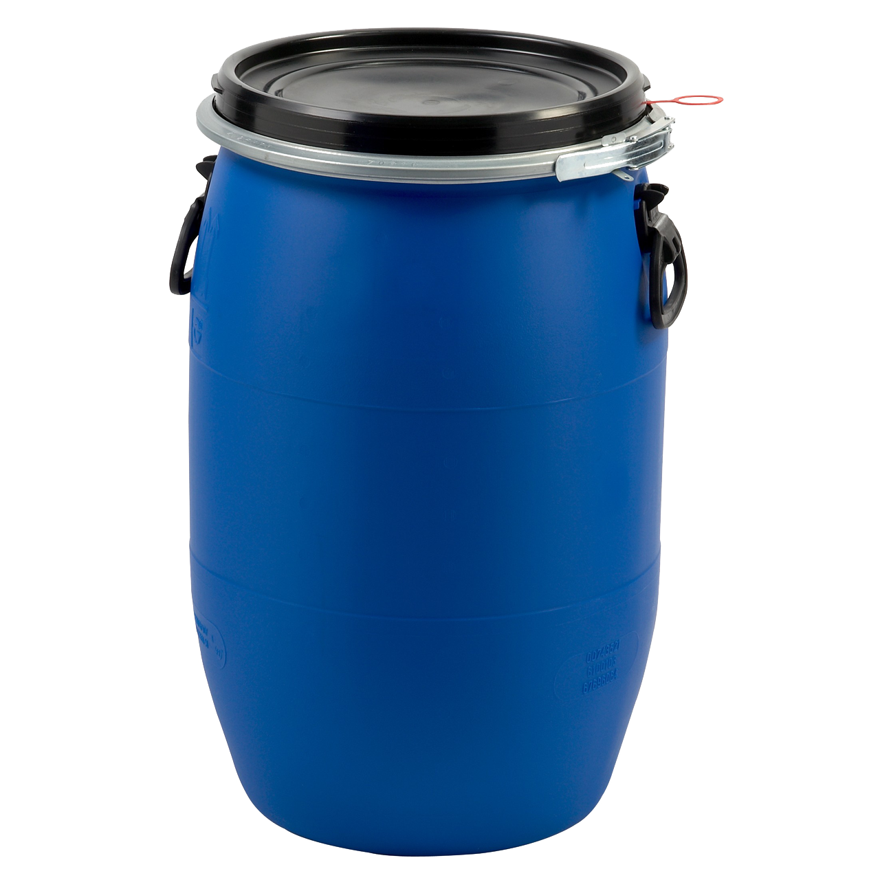 Bidón de 60 litros de boca ancha con cierre de ballesta y asas laterales, fabricado en polietileno de alta densidad. Homologado ADR para el transporte de mercancías peligrosas. Cierre por aro metálico de ballesta. Apilable hasta tres alturas.