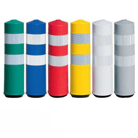 Hito de balizamiento y señalización de Tráfico H75. fabricadas por inyección PE flexible de muy alta resistencia al desgarro y al atropello.Fijación a la base plana mediante giro a 90 grados, liberación por impacto, atropello o giro inverso. Anclaje mediante tres tacos de expansión de Ø14x100mm. Las dos bandas reflectantes perimetrales, sus extremos fijados con máquina semiautomática que proporciona un acabado impecable. Retroreflectantes Clase 2.